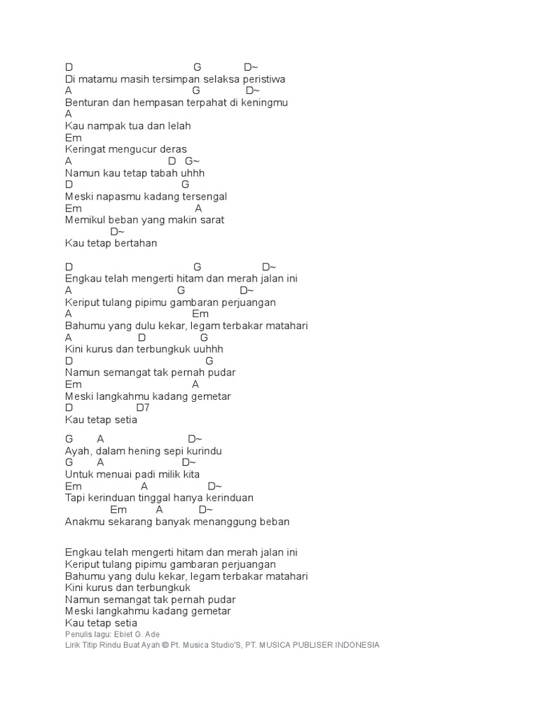 Ebiet G Ade Titip Rindu Buat Ayah Kumpulan Kunci Gitar Lirik Lagu Indonesia