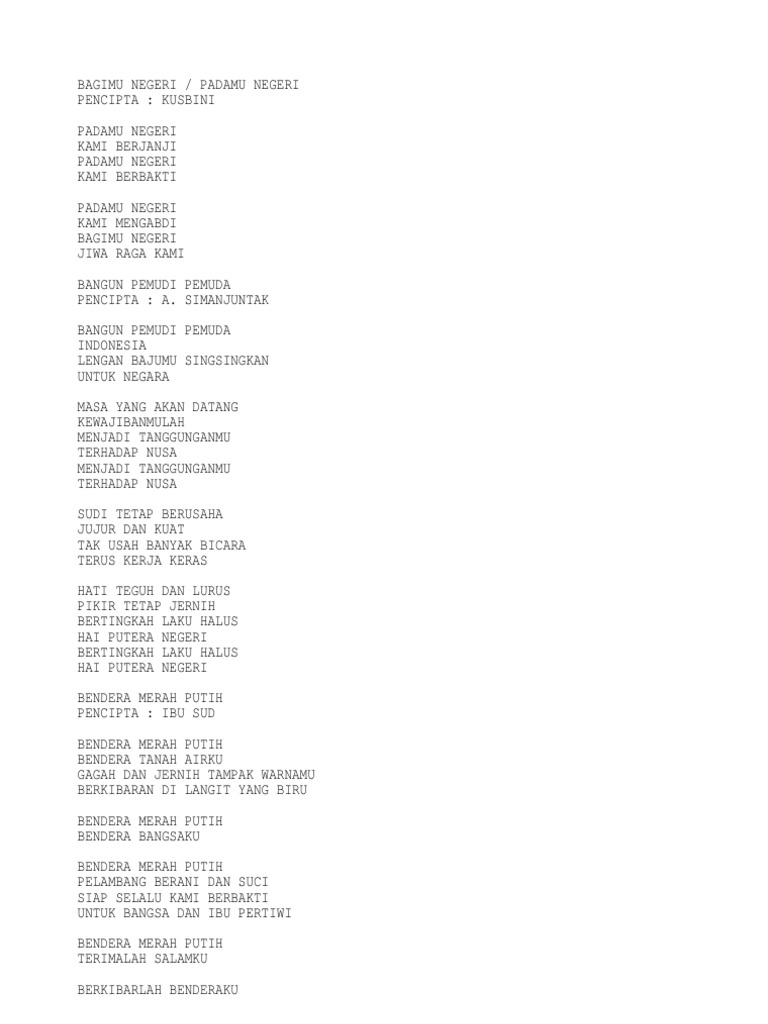 97327588 Kumpulan Lirik Lagu Wajib Nasional